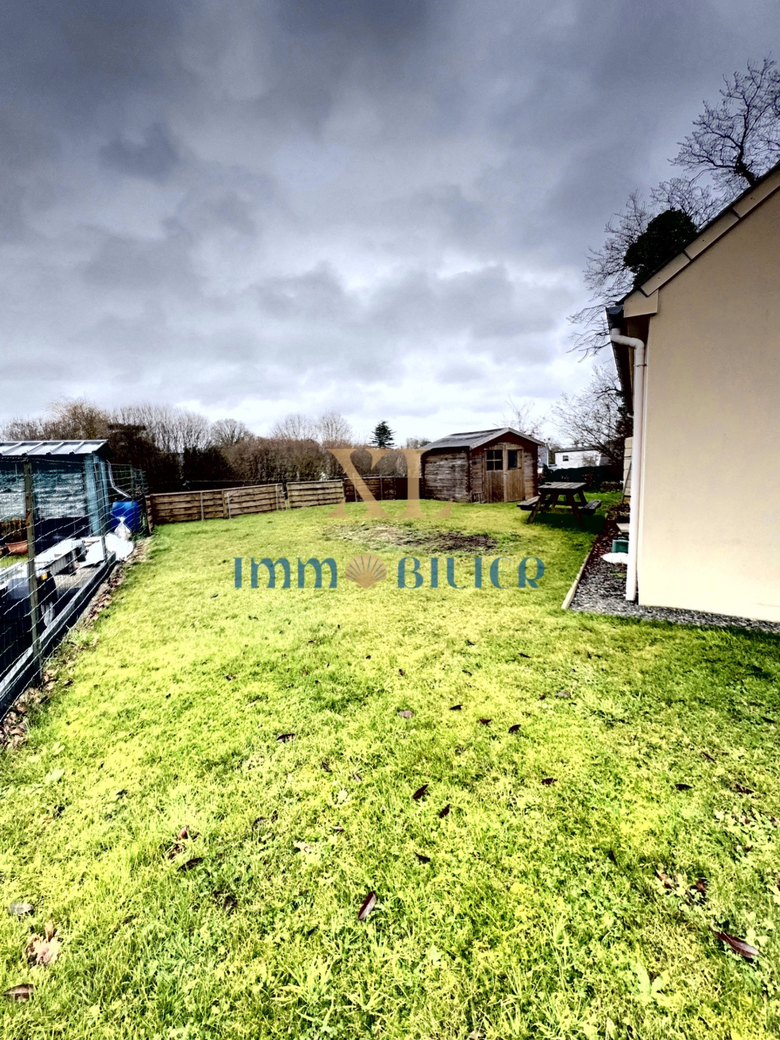 À l’extérieur, un jardin facile d’entretien et un cabanon complètent l’ensemble.
