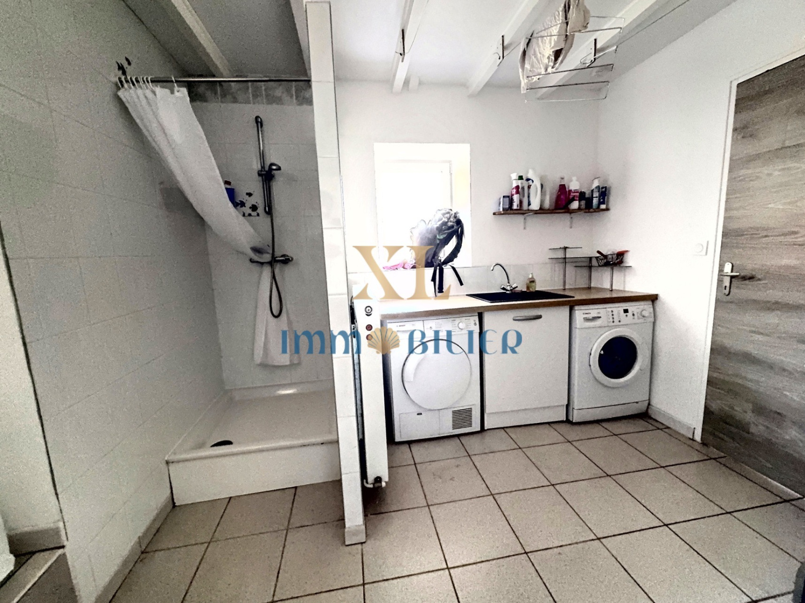 Le rez-de-chaussée propose également un cellier, une buanderie avec douche et des WC.