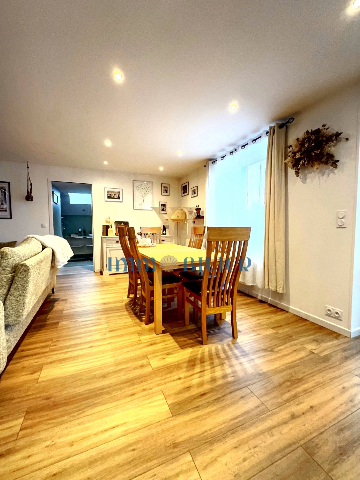 La maison principale, d’environ 83 m² habitables, a été rénovée avec goût et permet de s’installer immédiatement. Elle se compose d’une pièce de vie lumineuse avec son poêle à bois et sa cuisine ouverte, une salle d’eau avec WC et buanderie.